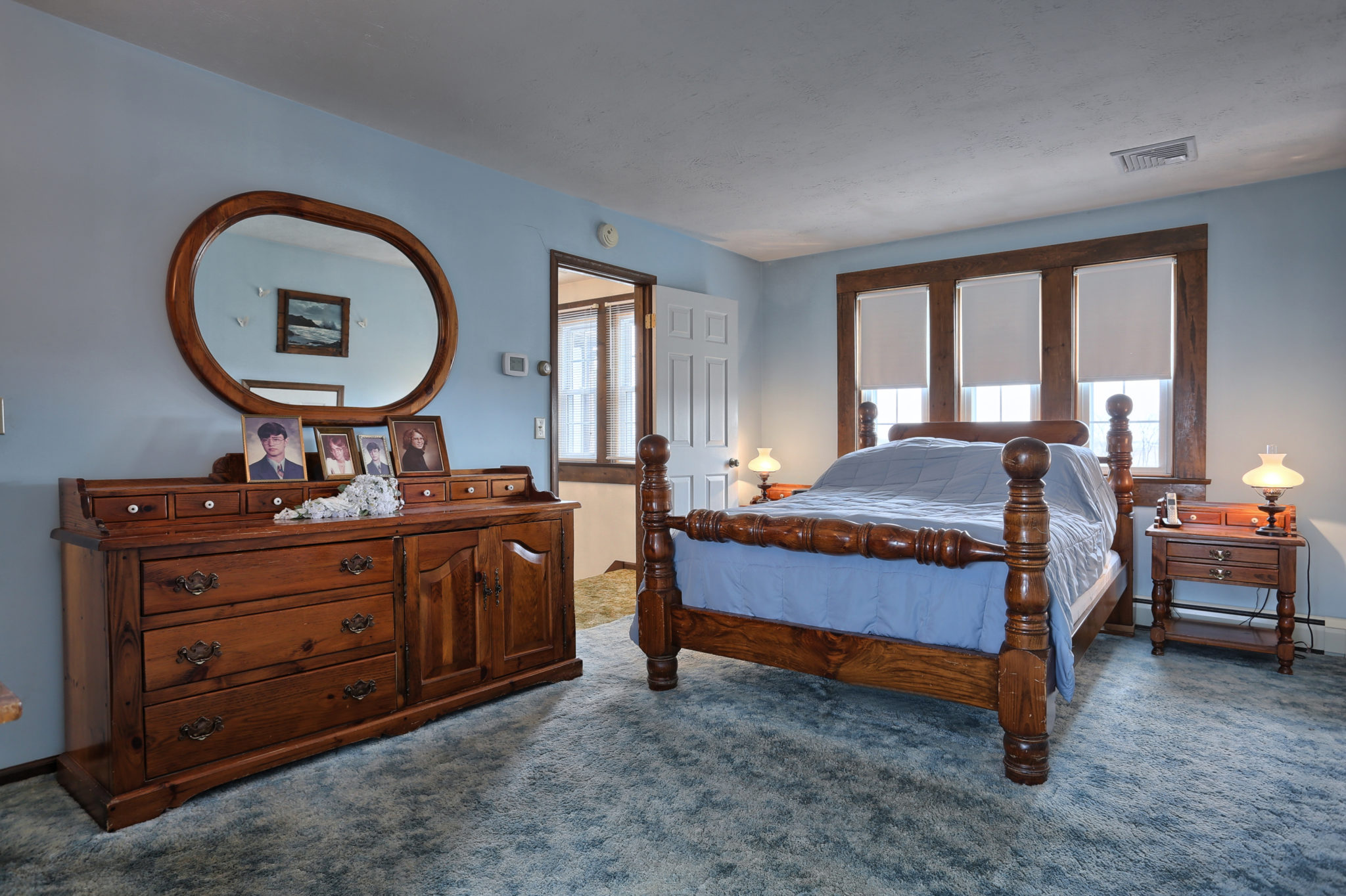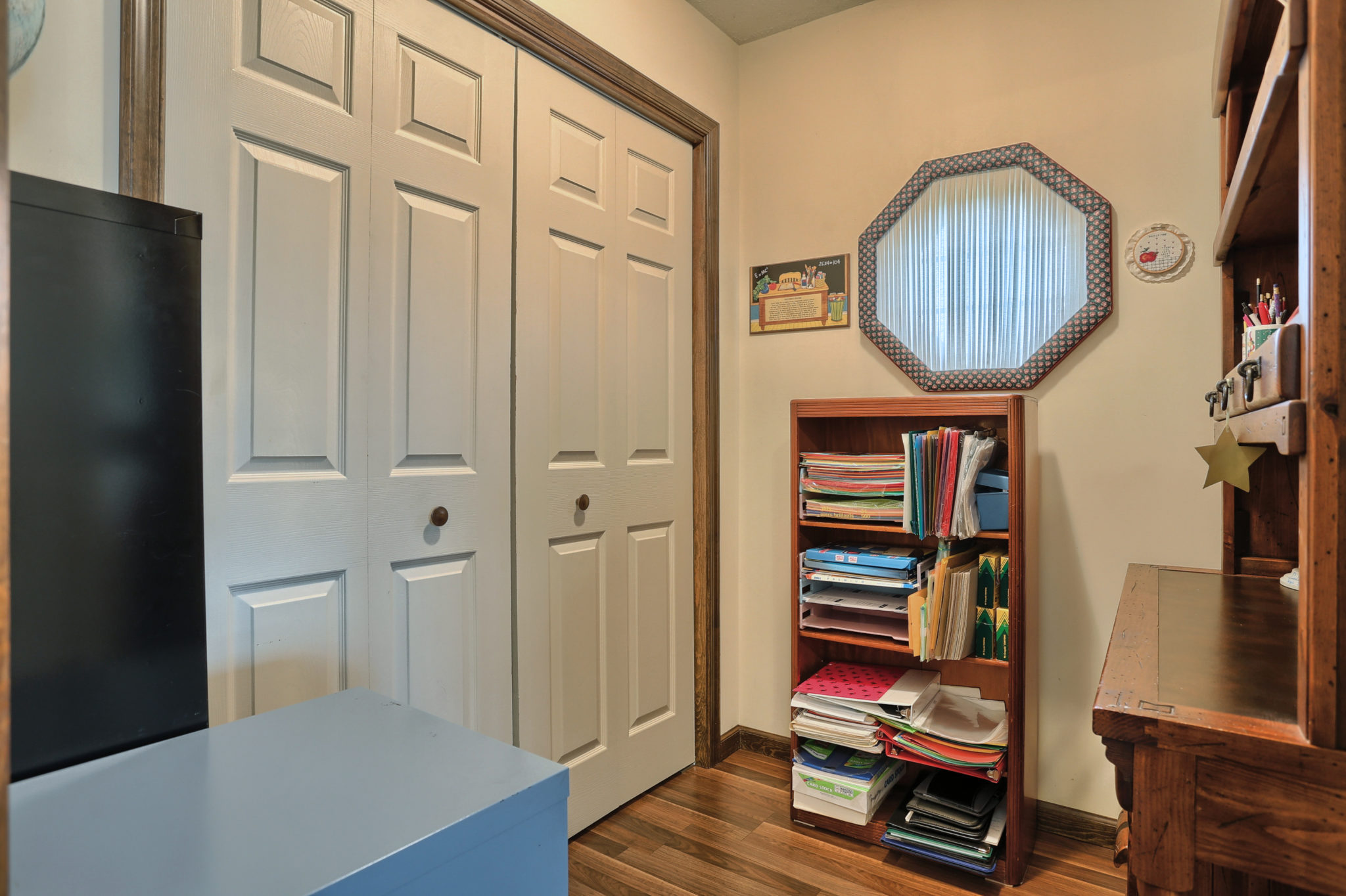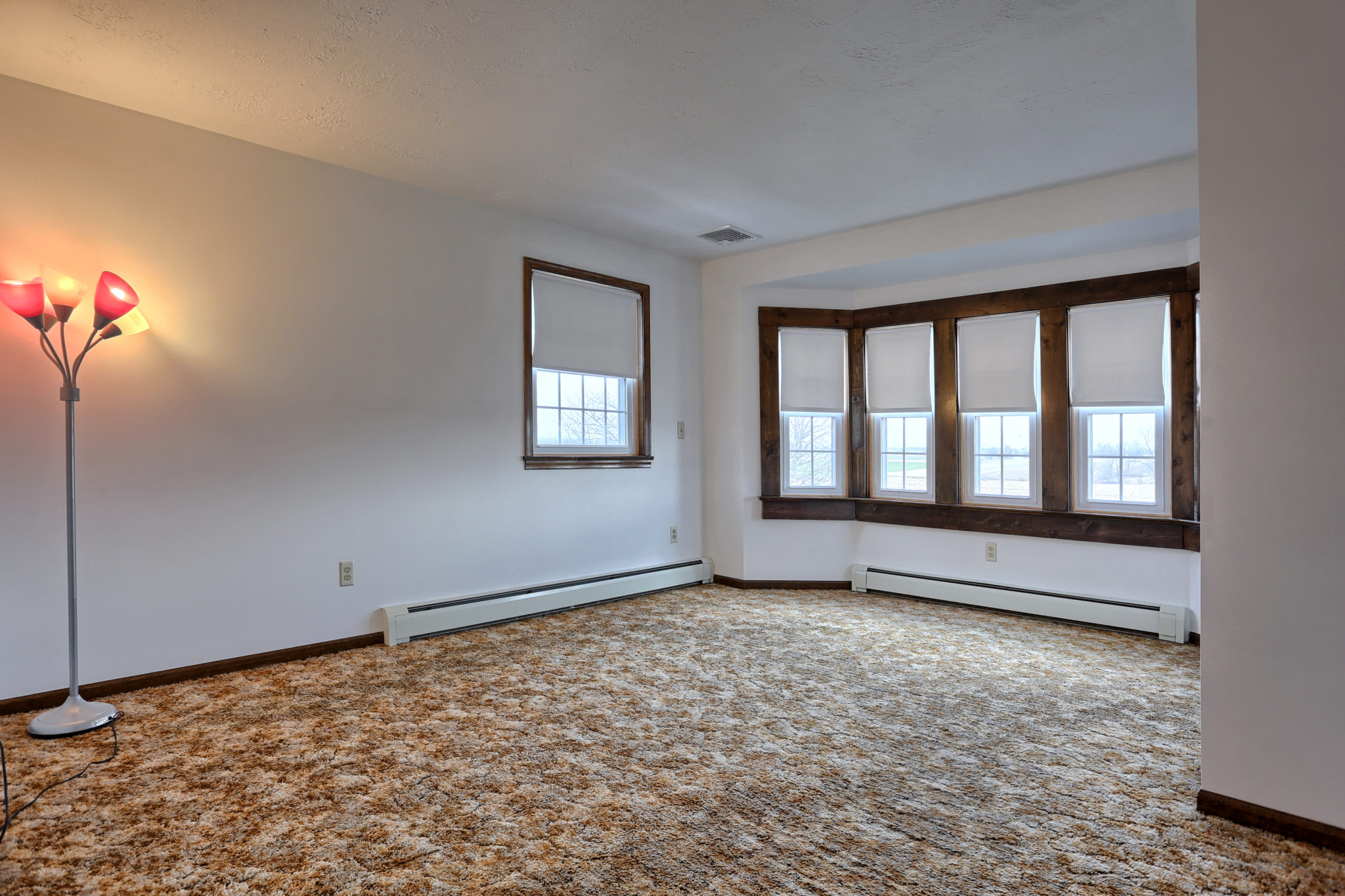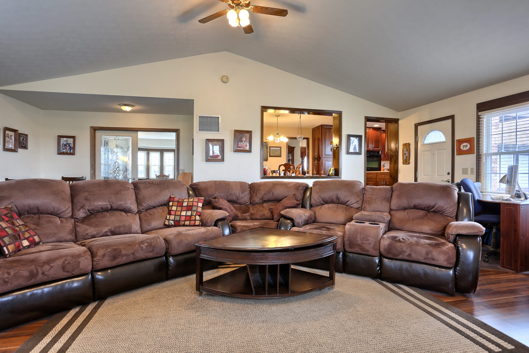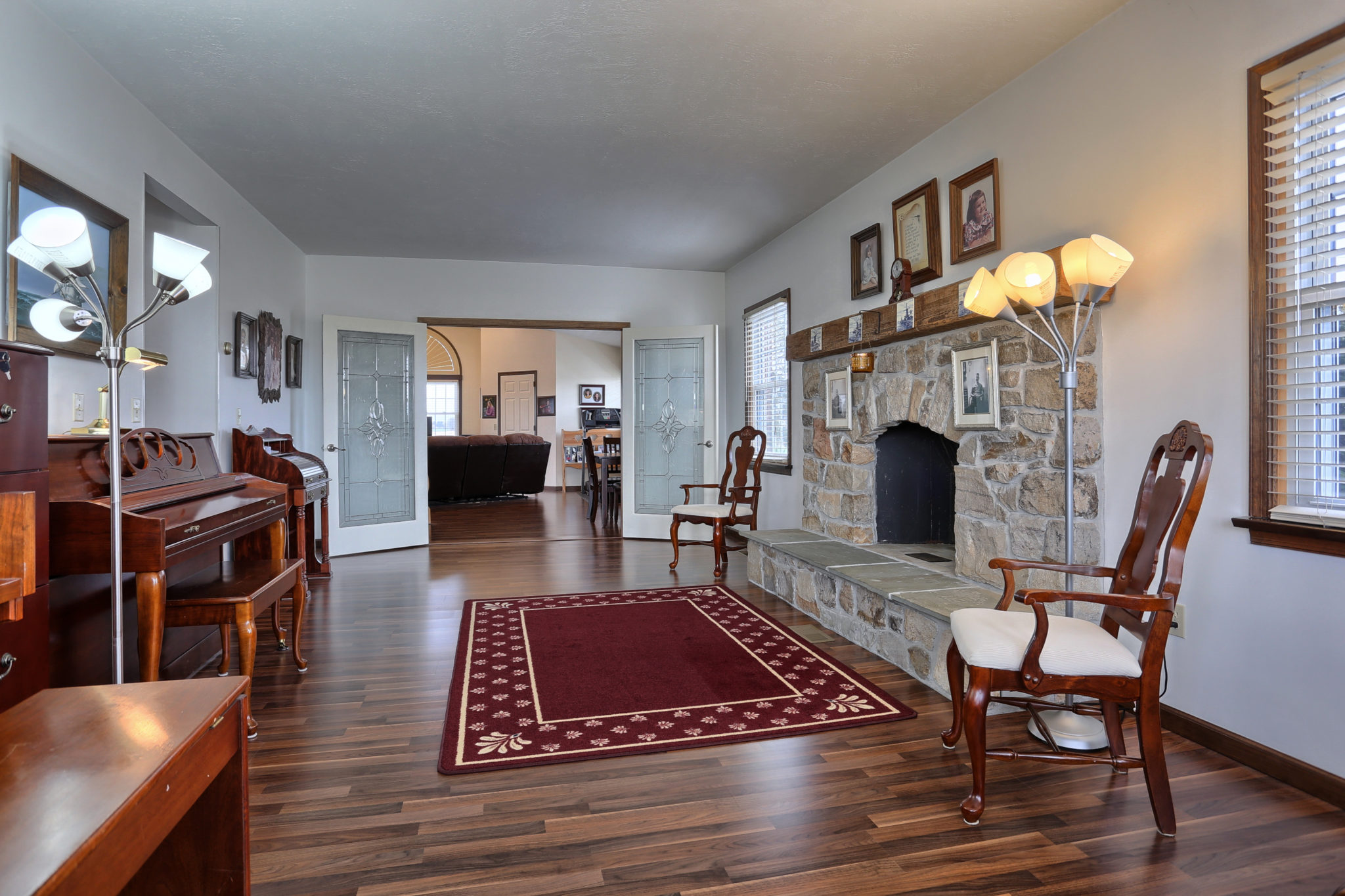 This is a unique Tudor-style home with over 2400 square feet of living space nestled on 1.13 acres with farm land in front and behind. The main floor features a remodeled kitchen with tiled backsplash, Quartz counters, double wall oven, attached dining area, amazing amounts of storage and a view of the backyard and spacious family room. From the kitchen step down into the heart of the home, the daylight filled family room featuring cathedral ceilings and dual oversized storage/office/craft areas with integral closets and access to the deck and backyard. Walk through to the front living room featuring fireplace with raised stone hearth and wooden mantel and abundant natural light. First floor also features a full bath and large front hall closet.