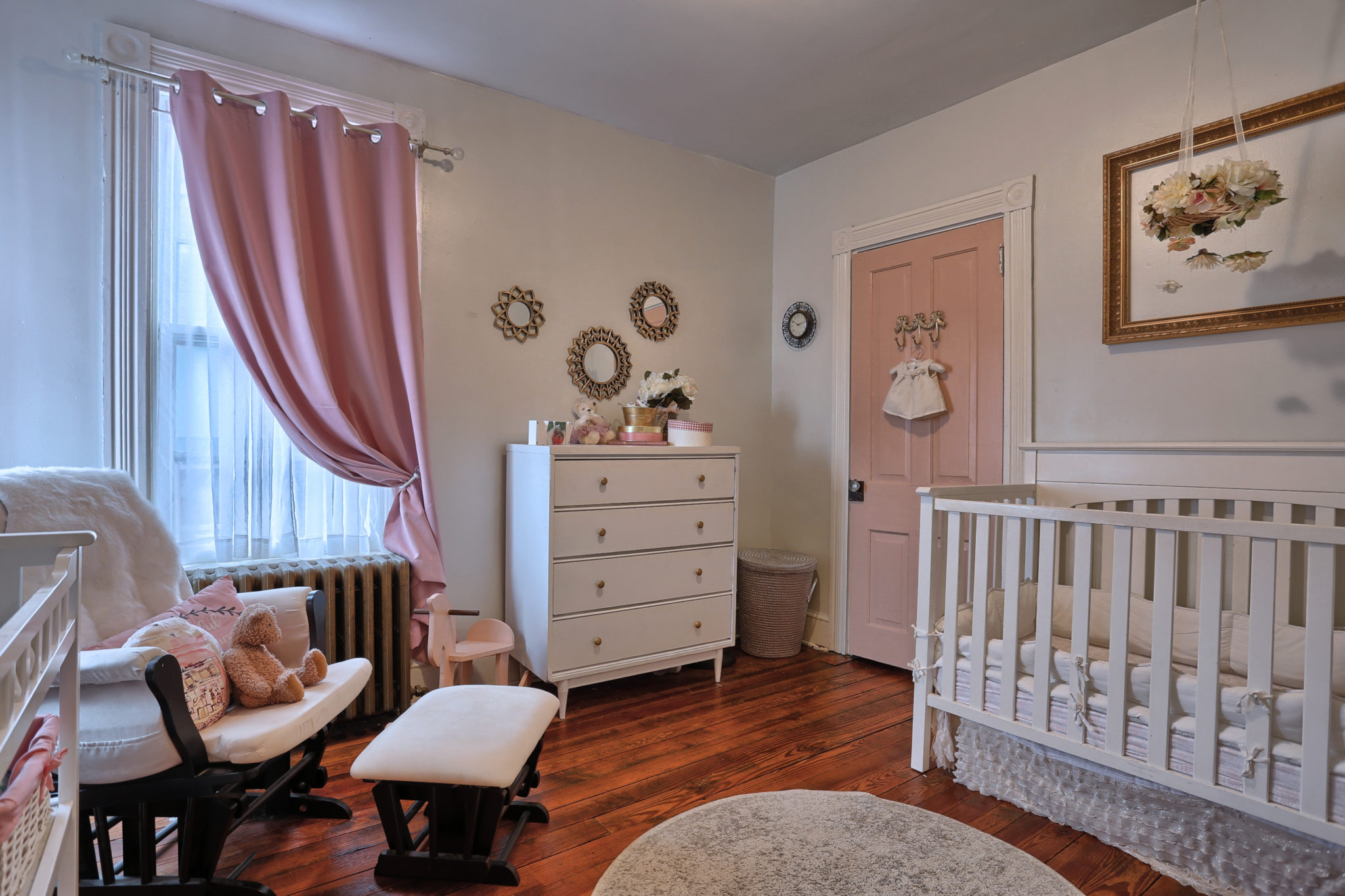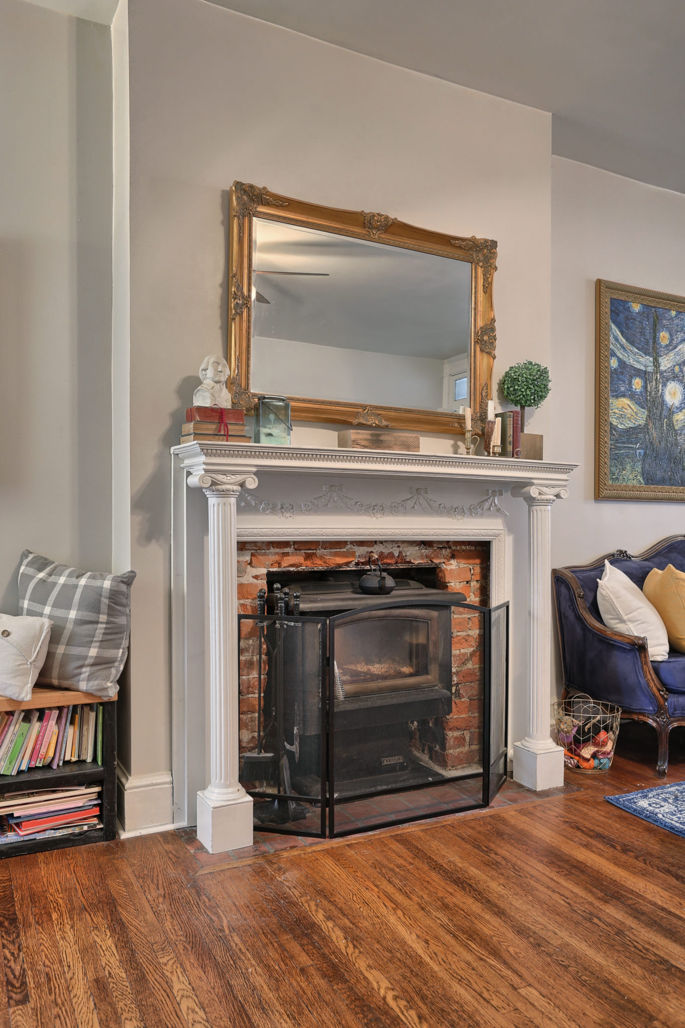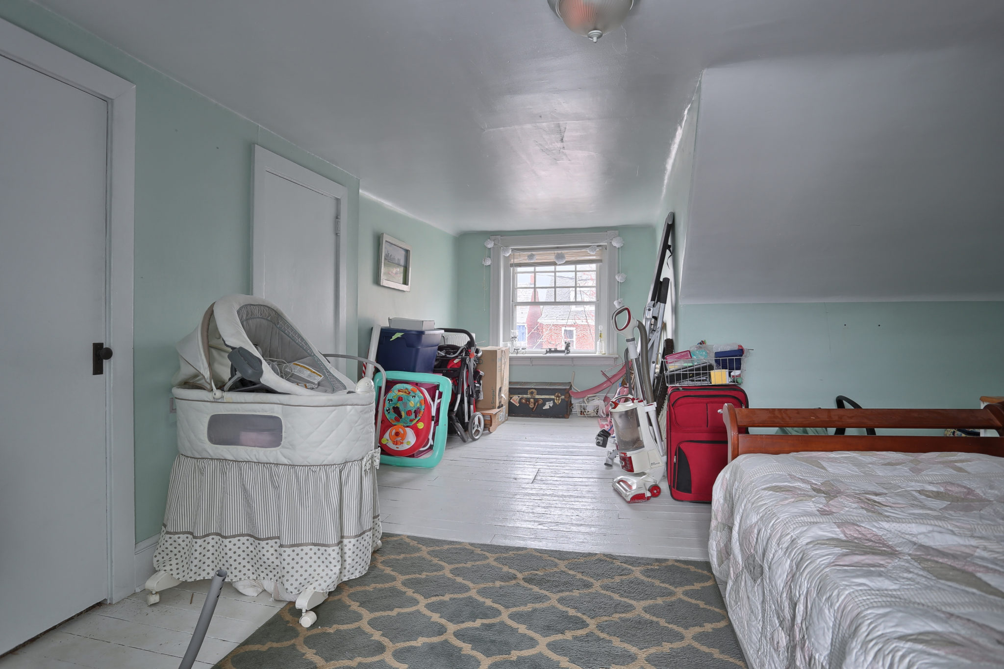 The character continues upstairs with 3 bedrooms boasting natural pine wood floors and balcony access from back bedroom. Sliding barn door leads to finished attic for spacious 4th bedroom.